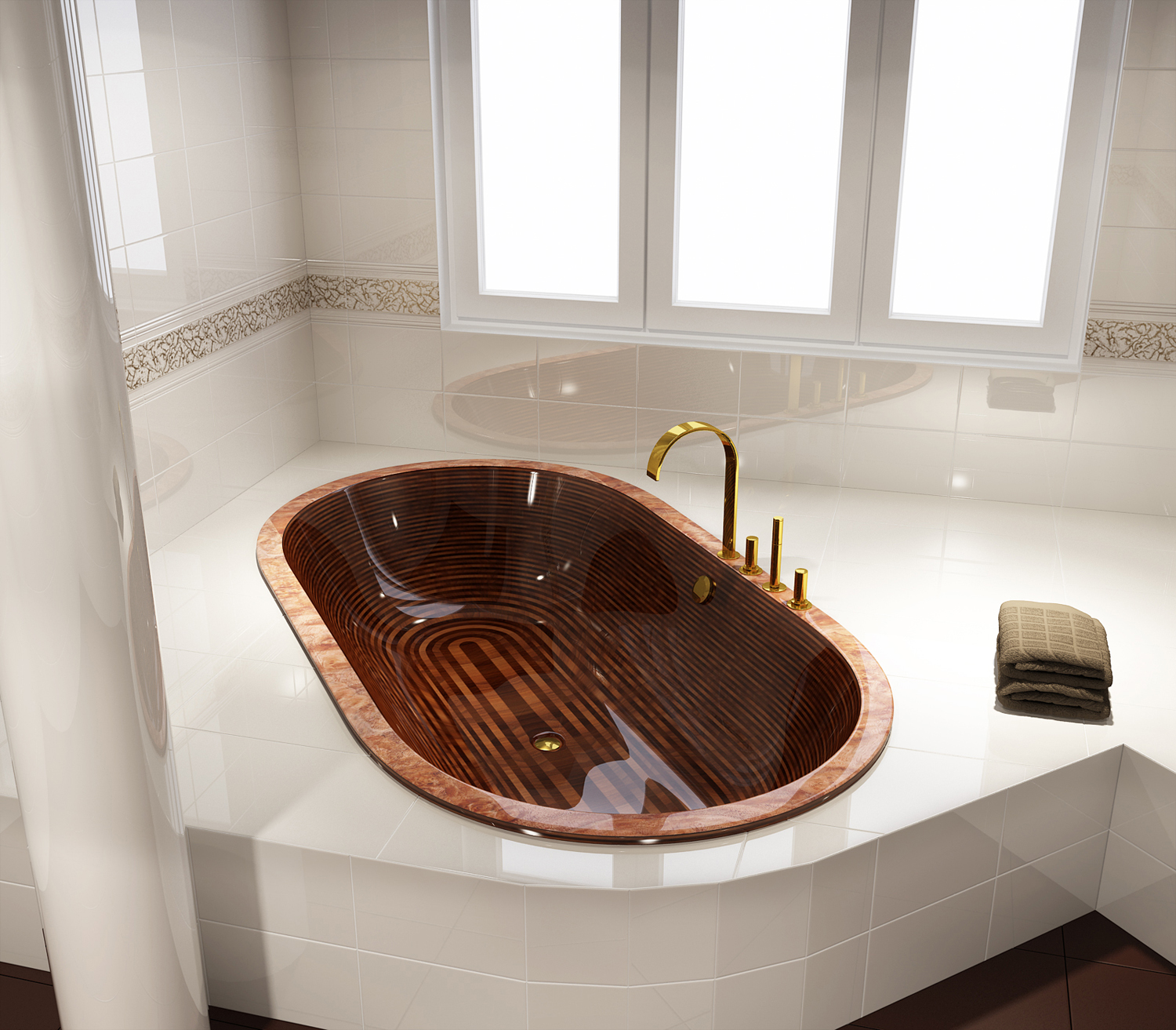 Bild 2: Nach einem intensiven Tag auf der Skipiste lässt es sich ideal in einer furnierten Badewanne entspannen. Foto: MAC-HOLZWASCHBECKEN