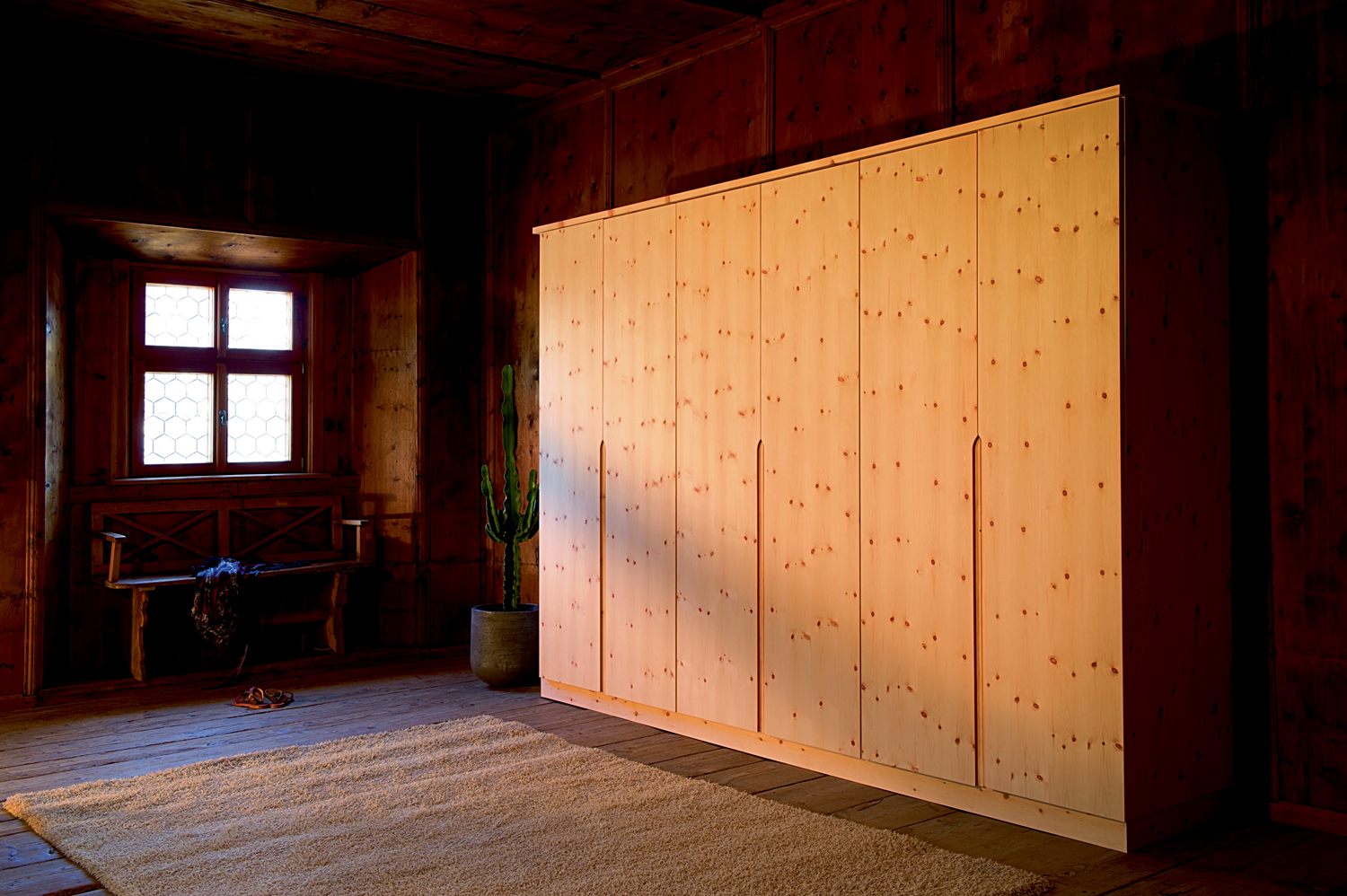 Bild 2: Ein Schrank mit Zirbenfurnier ist ein echter Hingucker. Foto: (c) Tischlerei Forcher
