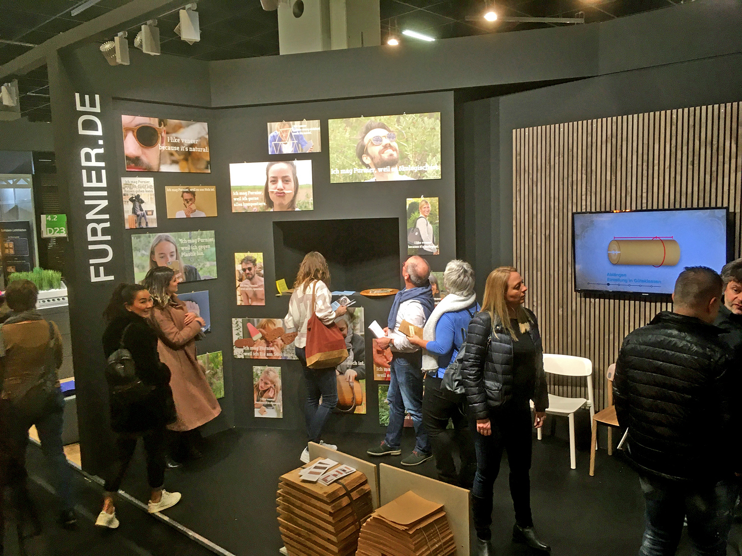 Bild 1: Viele Furnierliebhaber fanden den Weg zum IFN-Messestand auf der imm cologne 2020. Foto: IFN