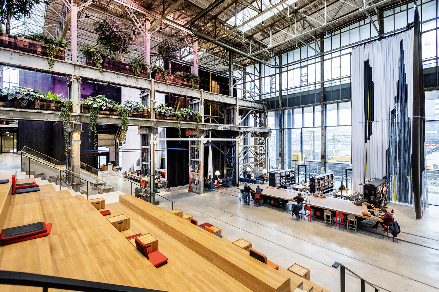 Direkt neben dem Bahnhof wurde dieses Riesenprojekt realisiert. Aus einem Ort der schweißtreibenden körperlichen Arbeit mit hohem Geräuschpegel und reichlich Schmierfett wurde ein Ort der Entspannung, des Lernens und eines generationsübergreifenden und blühenden Soziallebens. Für die Realisierung der „LocHal“ wurde das alte Hallen-Skelett erhalten, um auch in neuer Funktion ein offenes Raumdesign zu erzielen. Entstanden sind ein Bistro, Rückzugsorte, Meetingräume, ausgestattet mit multifunktionalen Möbeln, etlichen Sitzgelegenheiten und natürlich sehr vielen Büchern.