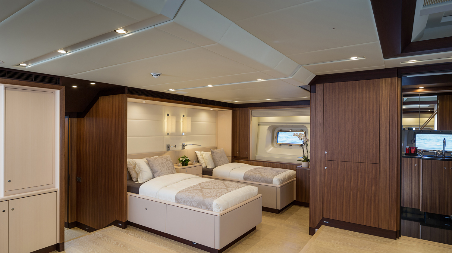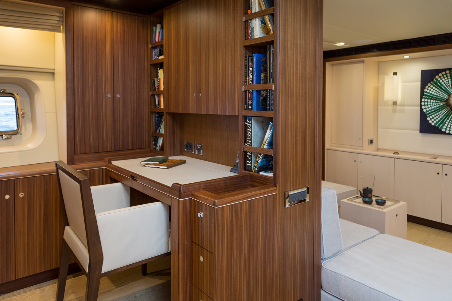 Bild 1: Furnier fasziniert mit seiner einzigartigen Optik, sorgt für eine wohlig warme Atmosphäre und hat eine angenehme Haptik. Foto: Royal Huisman Sea Eagle by Nicola Bozzo & Carlo Baroncini