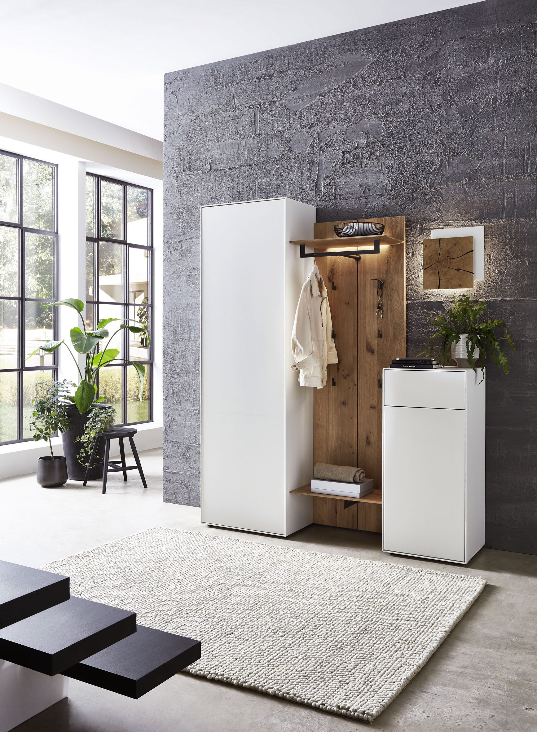 Bild 2: Eine Mischung aus geschlossenen und offenen Elementen erleichtert das Verstauen von Mänteln, Jacken und Schuhen. Foto: DGM/Voglauer