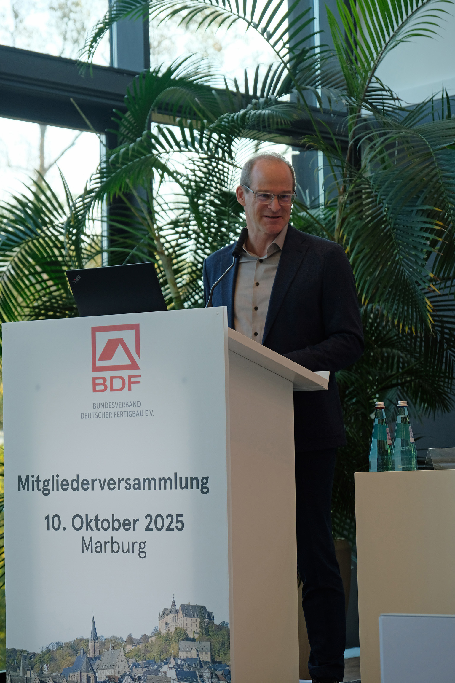 Ein Schwerpunkt der BDF-Mitgliederversammlung neben der Vorstandswahl war die Abstimmung einer Strategieentwicklung mit Blick auf die kommenden zehn Jahre. Hintergrund ist, dass die Mitglieder des Verbandes über den Familienhausbau hinaus, zunehmend auch weitere Geschäftsfelder wie etwa den Mehrgeschossbau, die Quartiersentwicklung und das serielle Sanieren sowie den Bau von Objekten für Gewerbe und die öffentliche Hand bearbeiten. Diese Segmente machen einen steigenden Anteil des Branchenumsatzes aus. Der BDF versteht sich als Interessenvertretung des seriellen und holzbasierten Bauens und wird seine Verbandsaktivitäten künftig stärker auch auf die neuen Geschäftsfelder ausrichten. Kerngeschäft bleibt aber das Einfamilienhaus.