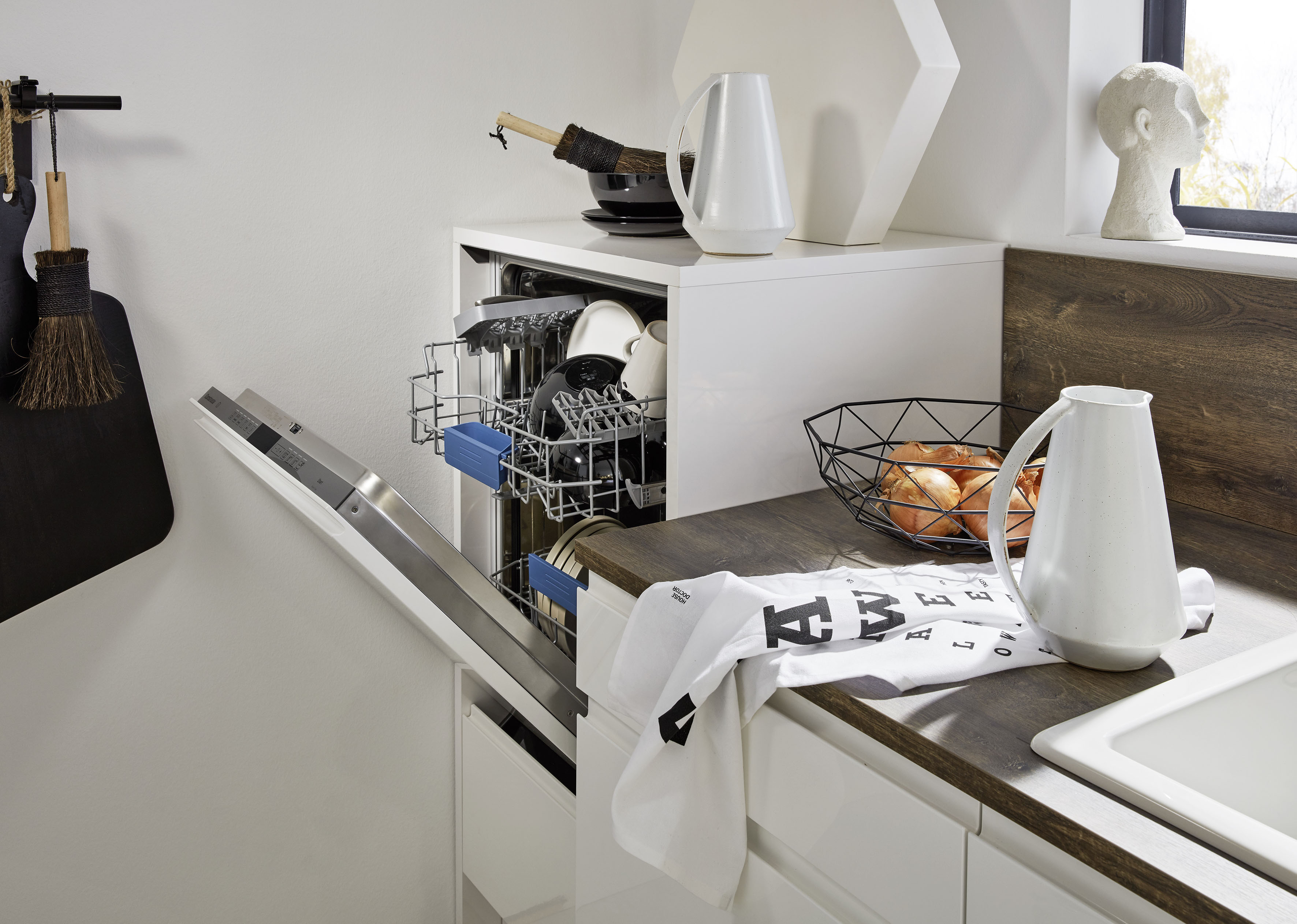 Bild 1: Ein hocheingebauter Geschirrspüler trägt zur rückenfreundlichen Küchenarbeit bei. Foto: DGM/Nolte Küchen