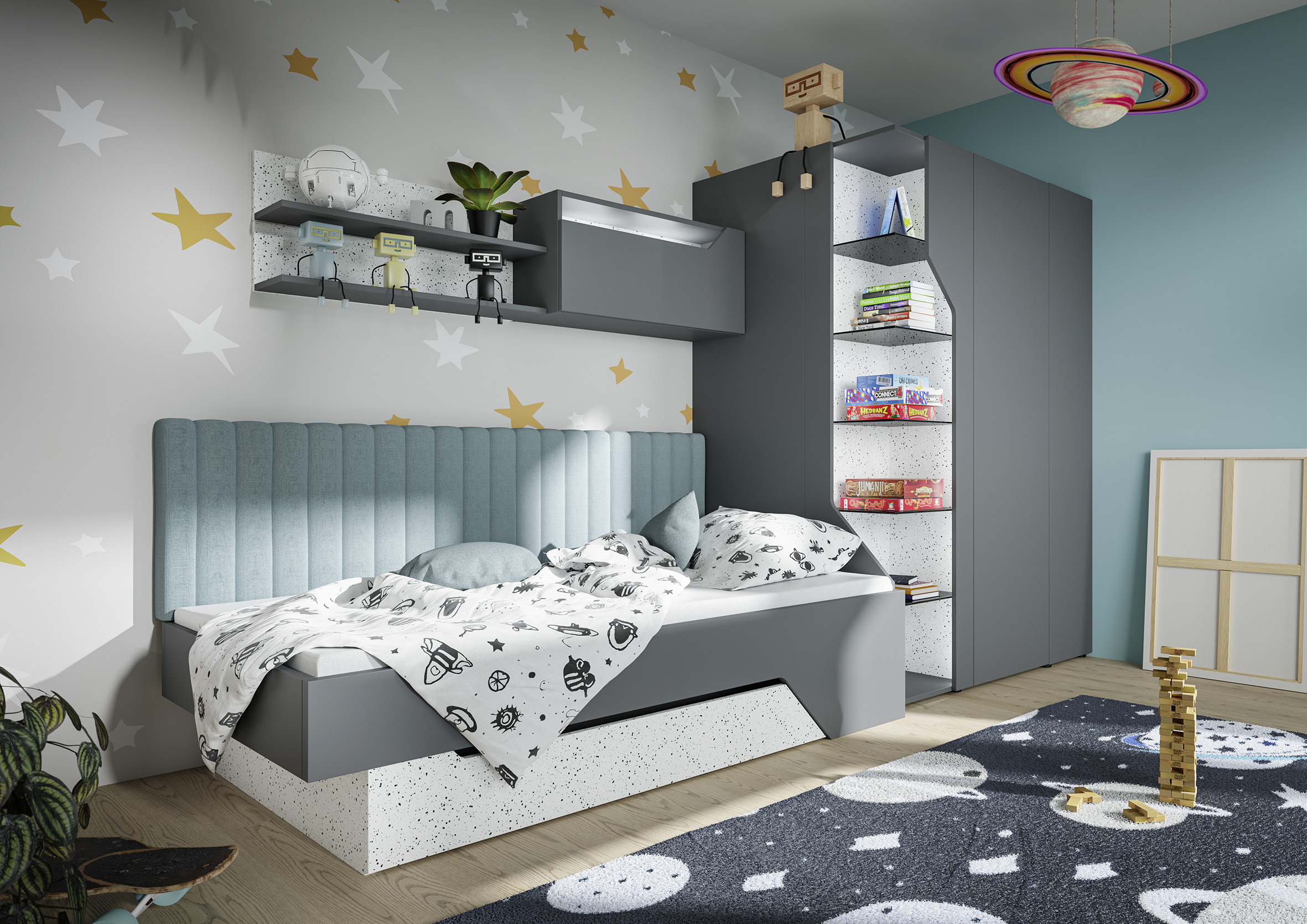 Gerade Kinder- und Jugendmöbel unterliegen in Deutschland besonders strengen Sicherheitsvorgaben. Statt scharfer Kanten oder Ecken finden sich sanft abgerundete Formen. Eine zentrale Rolle spielt zudem das Bett, insbesondere für Babys und Kleinkinder. „Es sollte optimal auf Gewicht und Schlafbedürfnisse abgestimmt sein, denn Kinder verbringen deutlich mehr Zeit im Liegen als Erwachsene“, betont Winning. Neben einem stabilen Bettrahmen sind ein geeigneter Lattenrost und eine passende Matratze entscheidend. Beim Babybett sollten überstehende Teile oder Ritzen, in denen sich Bänder oder Kordeln verfangen können, vermieden werden. Bei Schränken und Kommoden empfiehlt sich eine zusätzliche Wandbefestigung, damit ein sicherer Stand der Möbel gewährleistet ist. Außerdem werden Schranktüren und Schubladen zum Schutz vor dem Einklemmen von Kinderfingern so konzipiert, dass sie sanft schließen.