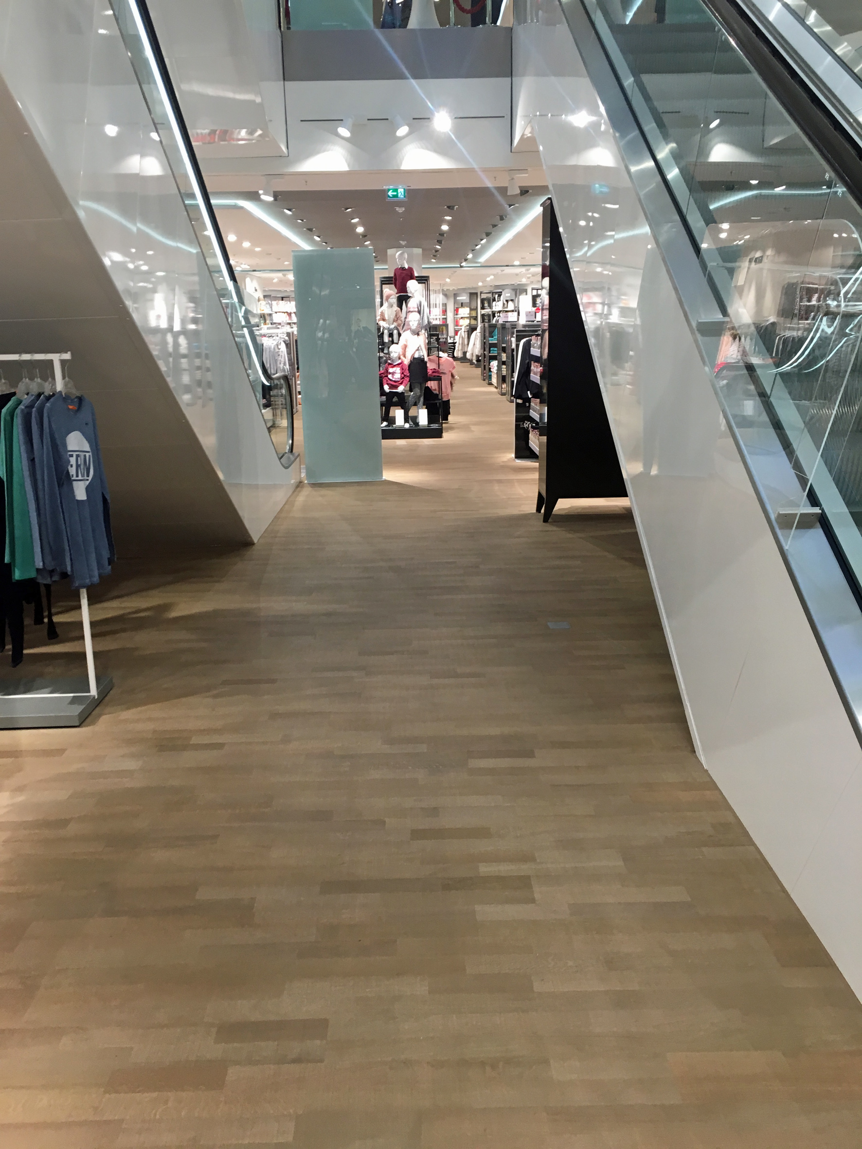 Bilder: Neu verlegter Parkettboden im Modehaus Zinser in Tübingen. Fotos: vdp