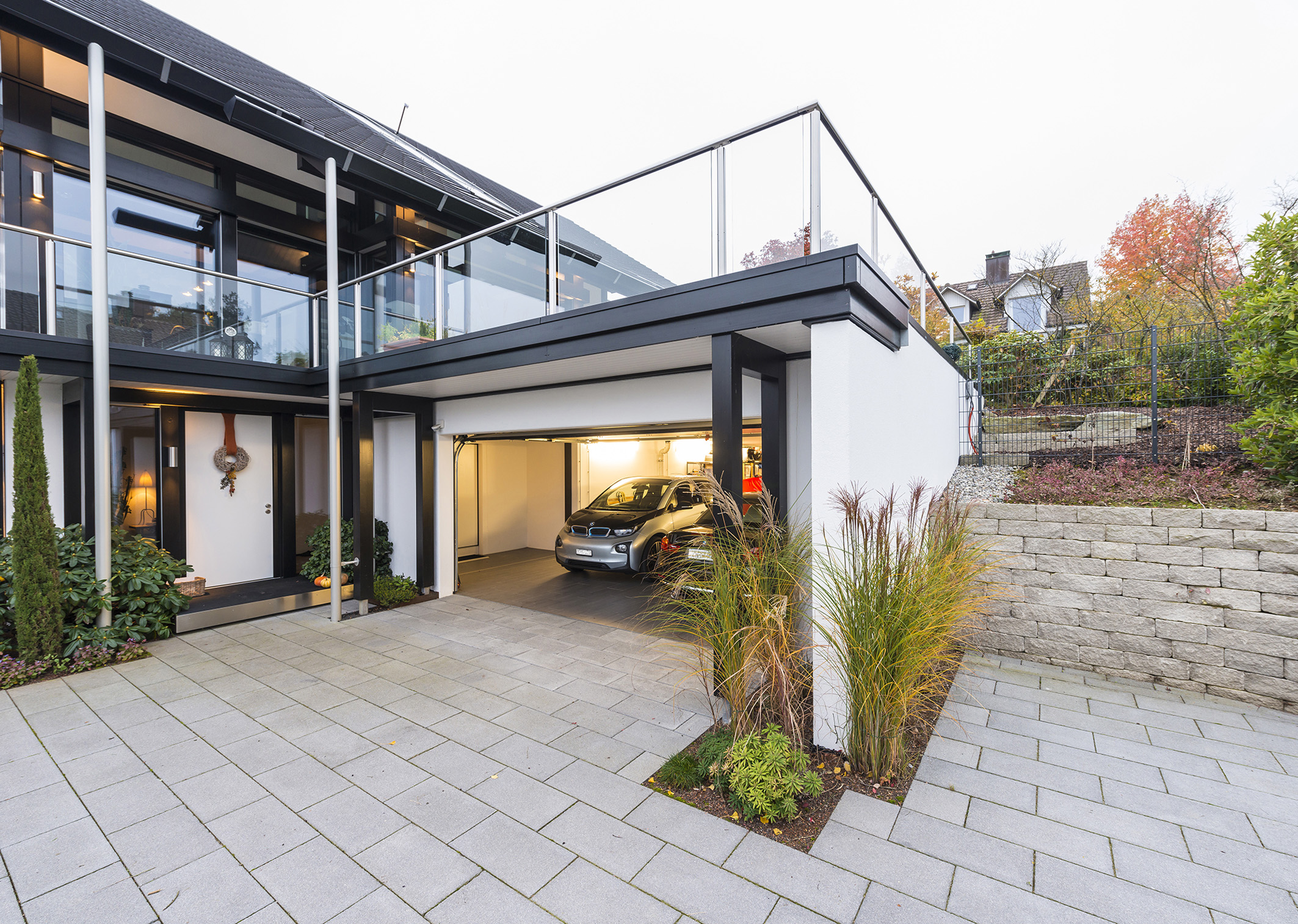 Bild 1: Die Garage unter dem Haus spart Grundstücksfläche und ist ein sicherer Stellplatz für das Auto. Foto: GÜF/Knecht Kellerbau