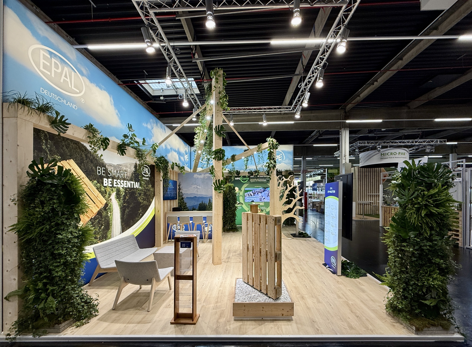 Auf ihrem Gemeinschaftsstand haben der Bundesverband Holzpackmittel, Paletten, Exportverpackung (HPE) e.V. und die European Pallet Association (EPAL) Deutschland auf der FACHPACK 2025 das Thema Kreislaufwirtschaft mit Witz und Esprit ins Zentrum gesetzt. Der aufmerksamkeitsstarke Messestand aus Holz, mit viel Grün und einem zentralen „Socken-Baum“ rückte mit dem Motto „Dein Schritt zum Kreislauf“ den Zukunftspfad der Branche in den Mittelpunkt.