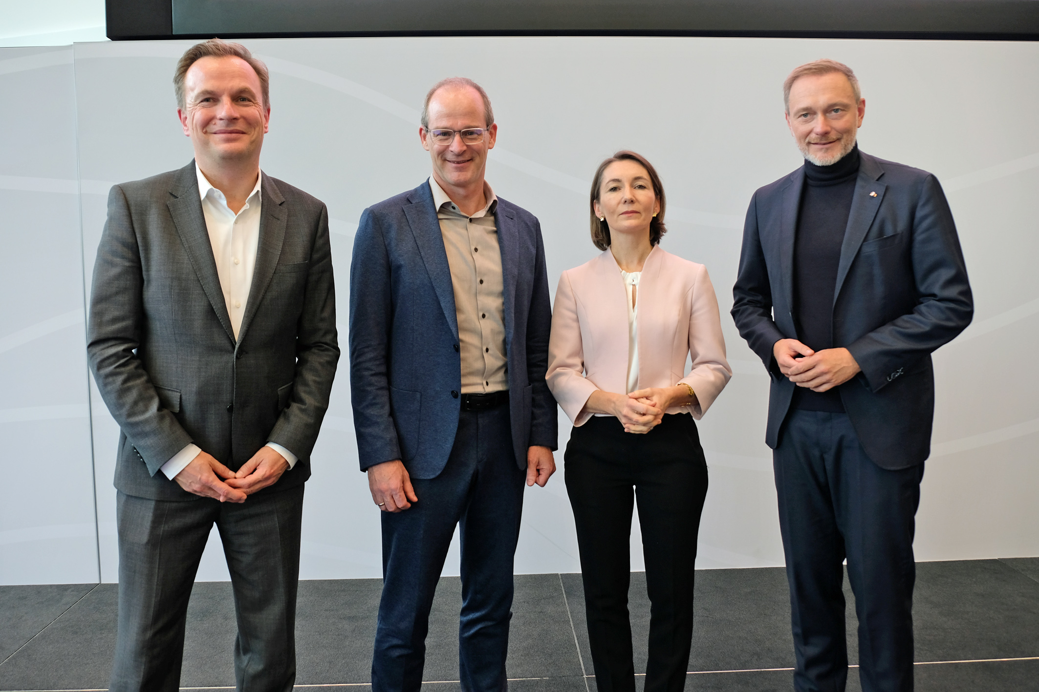 BDF-Präsident Mathias Schäfer (2.v.l.) begrüßte unter anderem Christian Lindner (r.), Claudia Major (2.v.r.) und Jens Südekum (l.) in Marburg. Foto: BDF